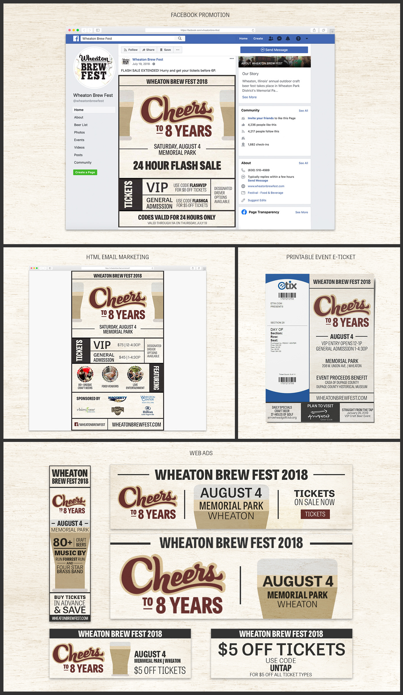 Marketing and theme branding design for the 2018 Wheaton Brew Fest.